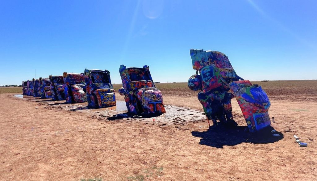 A la hora de elegir dónde dormir, no me guío solo por la distancia. Miro si esa zona tiene algo que me apetezca ver de noche o a primera hora. Por ejemplo, elegimos Amarillo para cenar en el Big Texan y estar al lado del Cadillac Ranch a la mañana siguiente. Otra cosa importante es el alojamiento en sí: en los pueblos pequeños la oferta puede ser muy justa, así que más de un día preferí avanzar unos kilómetros hasta el siguiente pueblo porque el motel me cuadraba más, ya fuera por precio, limpieza o porque era de esos míticos que te hace ilusión vivir.